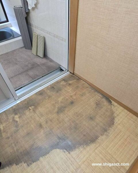 既存の浴室入り口の防水処理が悪く脱衣場の床に浴室から漏水しておりにましたので、